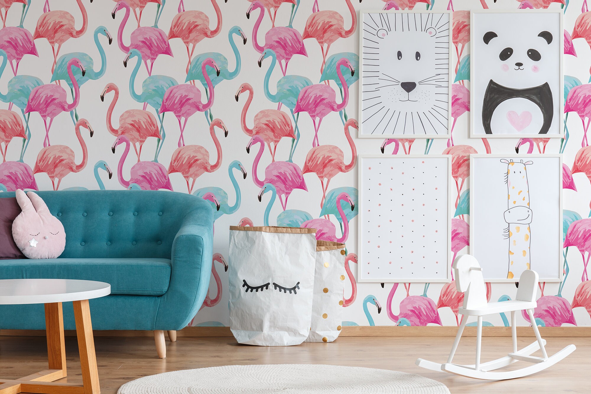 Pink Flamingo Wallpaper For Kids Room Peel And Stick Removable