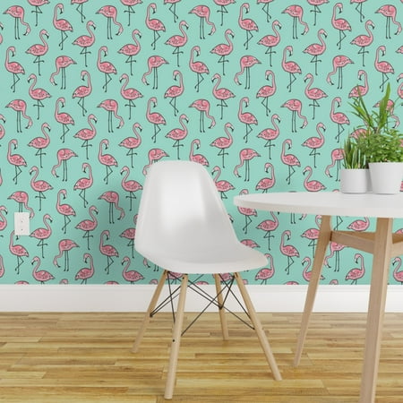 Spoonflower Peel And Stick Removable Wallpaper Flamingo Mint