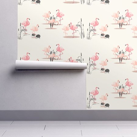 Peel And Stick Removable Wallpaper Flamingos Reeds Birds Vintage