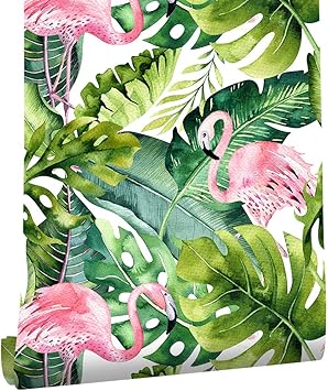 Kraska Peel Stick Wallpaper Tropical Pink Flamingo Removable