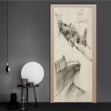 Amazon Com Airplane Door Wallpaper Hand Drawn Series Soviet Military Enginery Jets Flights World War Aviation Sketch 3d Door Decal Black Ecru For Home Decor 30 X 80 Baby