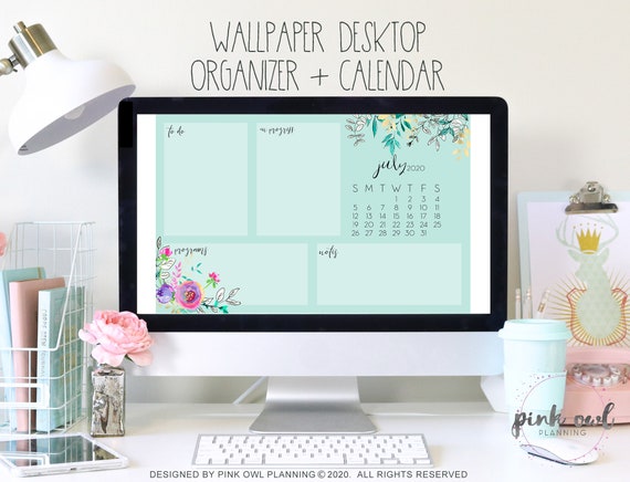 2020 21 Monthly Calendar Mint Floral Desktop Wallpaper Etsy