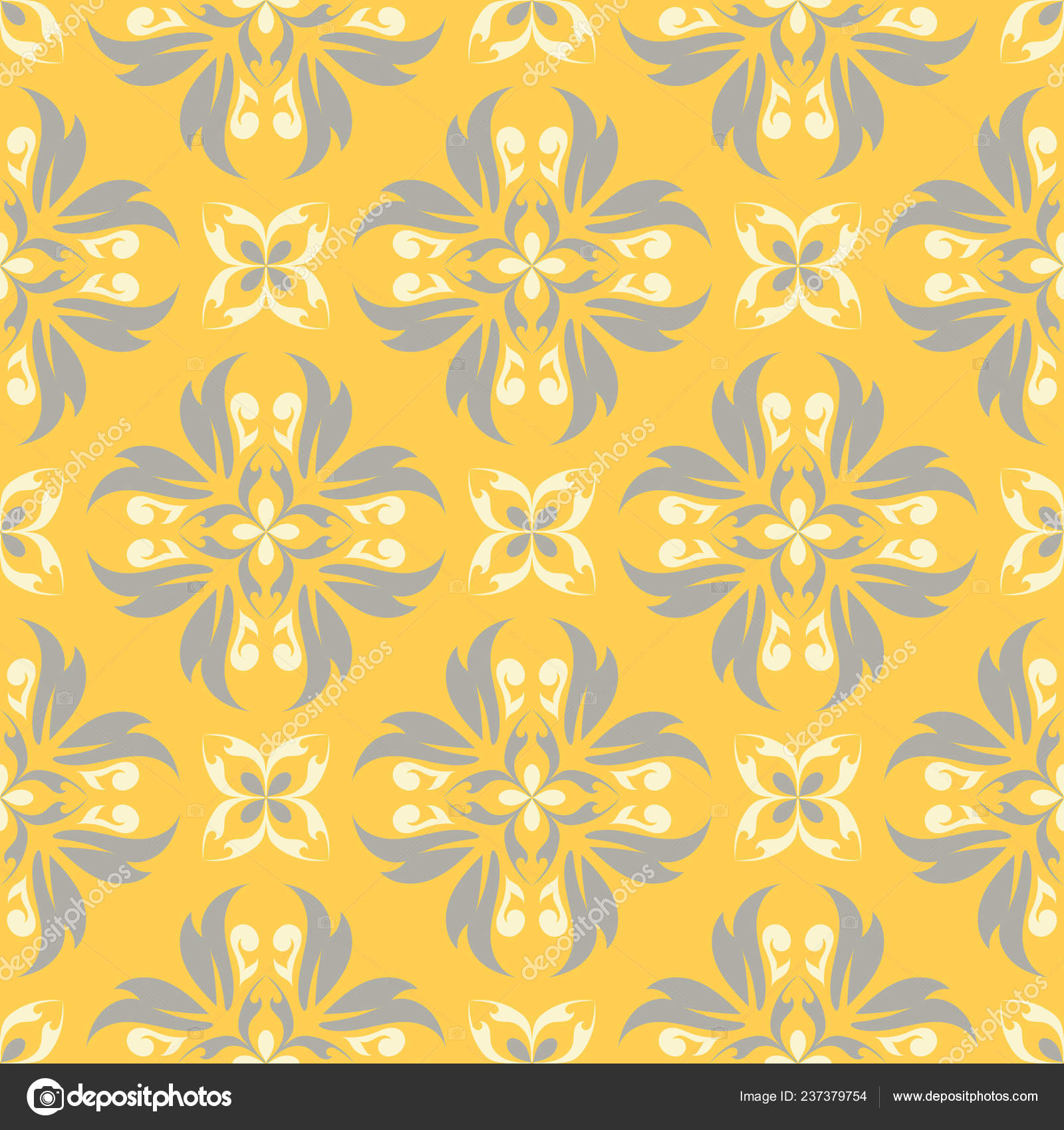 Floral Seamless Pattern On A Yellow Background For Wallpaper