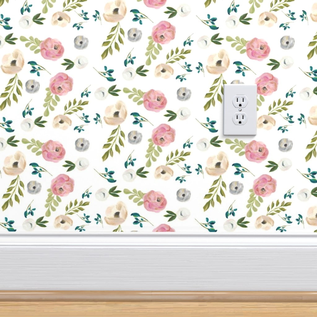 Dreamy Floral Wallpaper Watercolor Pastel Soft Wall Etsy