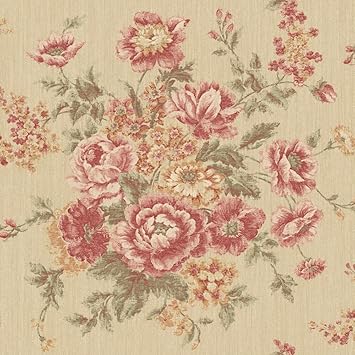 Dollhouse Vinyl Wallpaper Floral Roses Flower Vintage Pink Red