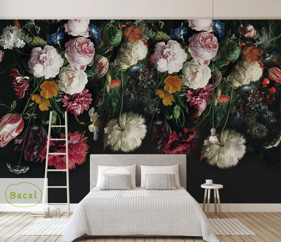 Dark Color Vintage Floral Wallpaper Wall Mural Slaylebrity