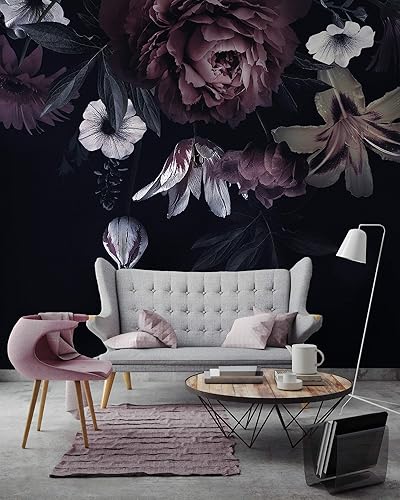 Amazon Com Murwall Dark Floral Wallpaper Peony Blossom Wall Mural Dutch Flower Wall Print Living Room Bedroom Entryway Handmade