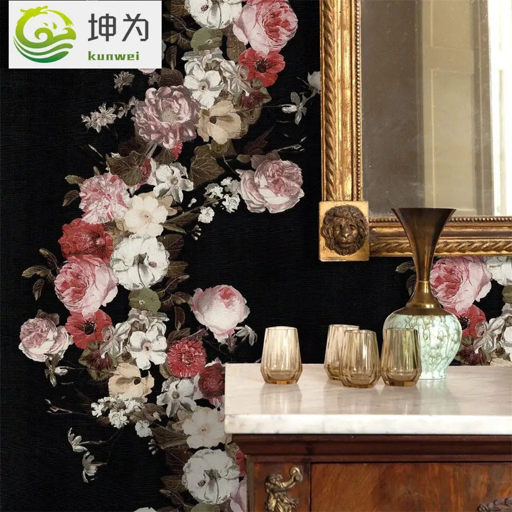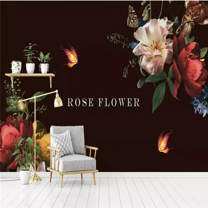 Floral Wallpaper 3d Nordic Modern Flower Black Background Wall