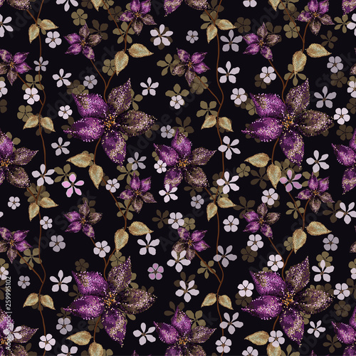 Endless Floral Wallpaper Pattern With Verbena On Black Background