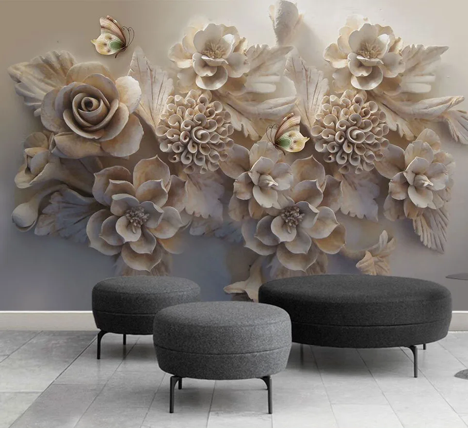 8d Carved Flower Mural Wallpaper Mural Wall Modern Living Room And