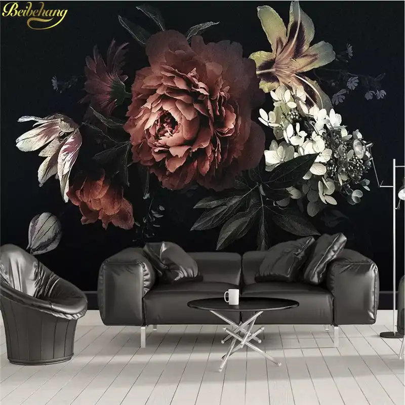 3d Black Oil Painting Floral Flower Wall Mural Wallpaper Living
