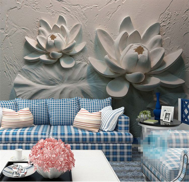 3d Embossed Water Lily Flower Mural Custom Photo Wallpaper For