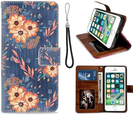 Amazon Com Painted Flowers Wallpaper Wallet Case Compatible With