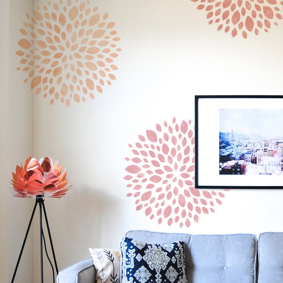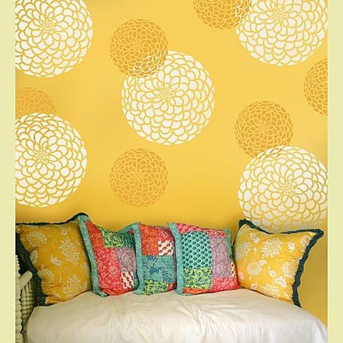 Chrysanthemum Flower Wall Stencil Wallpaper Look For Diy Home