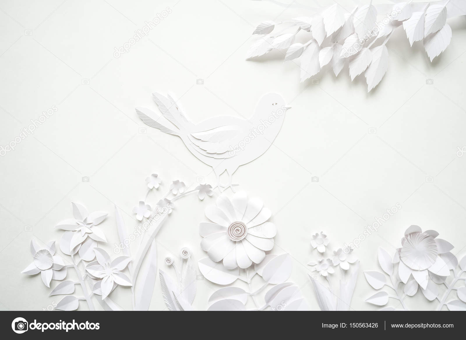 White Paper Flowers Wallpaper On White Background Spring Summer