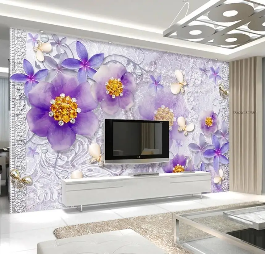 Custom 3d Wallpaper Mural Purple Flowers 3d Wall Paper Sofa Living