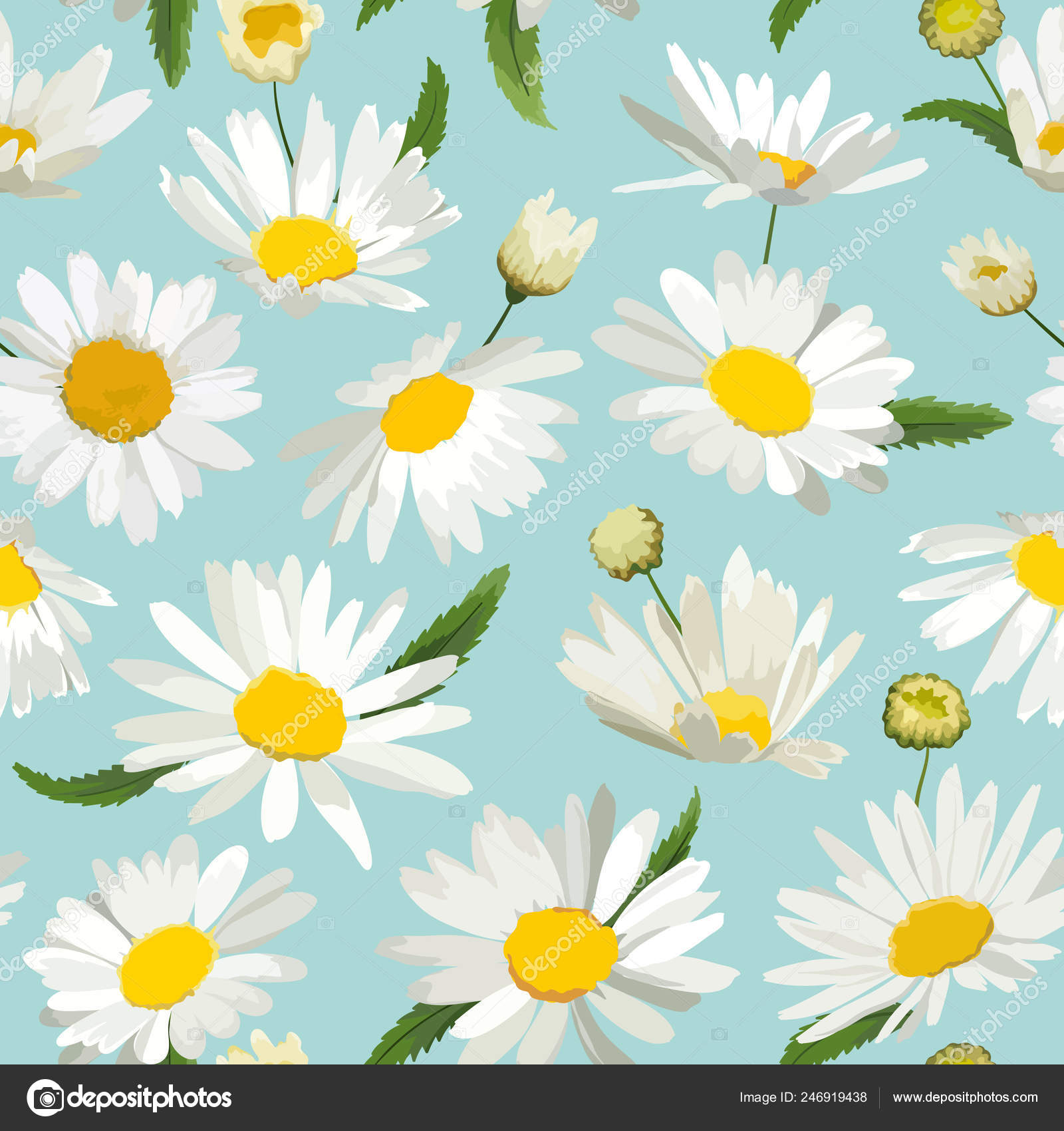 Floral Seamless Pattern With Chamomile Flowers Natural Background