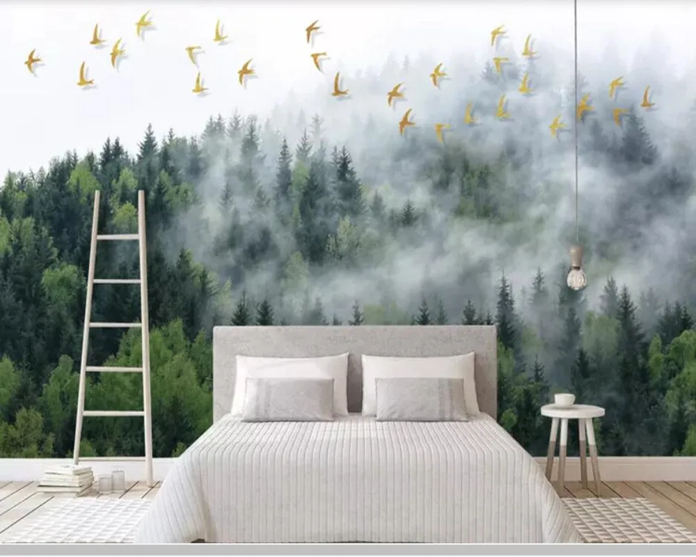 Misty Pine Forest Wallpaper Bird Mural 3d Photo Wallpapers Wall