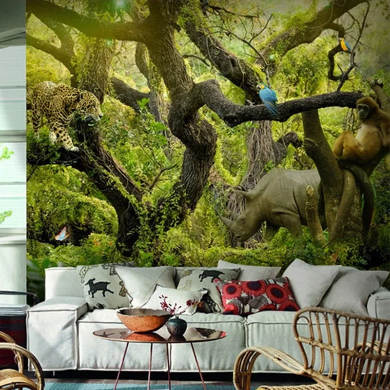 Photo Wallpaper 3d Stereo Primitive Forest Animals Murals Living