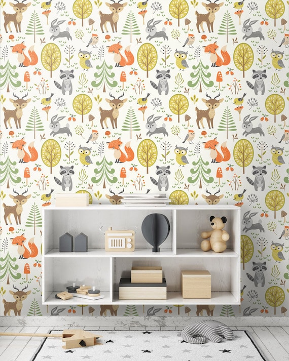 Woodland Animals Wallpaper Forest Animals Repositionable Etsy