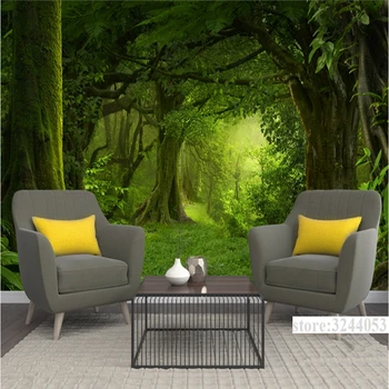 Custom 3d Mural Wallpaper Green Tree Forest Living Room Bedroom