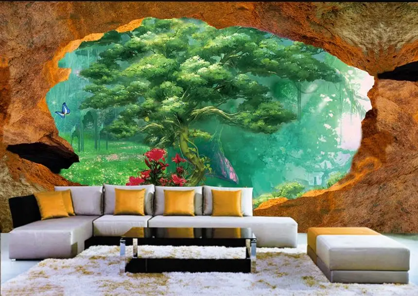 Custom Photo Mural 3d Stereoscopic Forest Mural Wallpaper Living