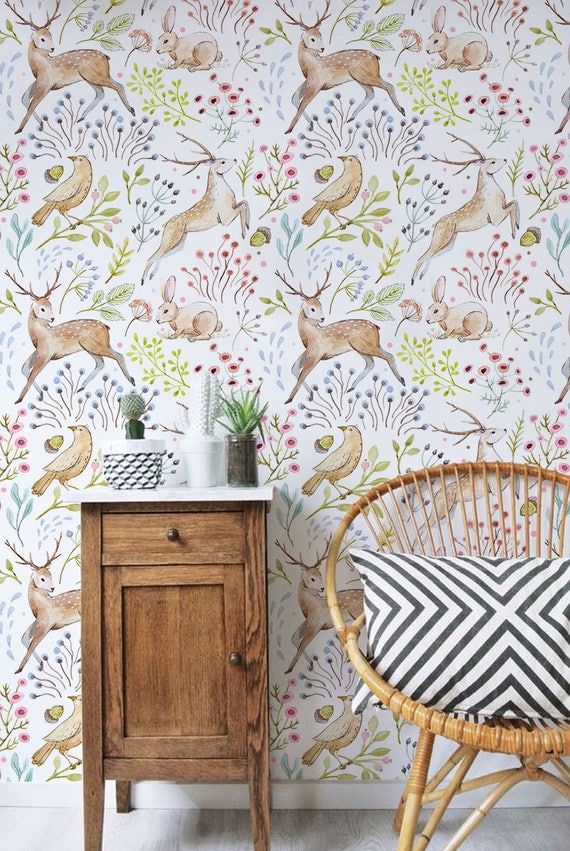 Forest Animal Removable Wallpaper Nursery Removable Wallpaper