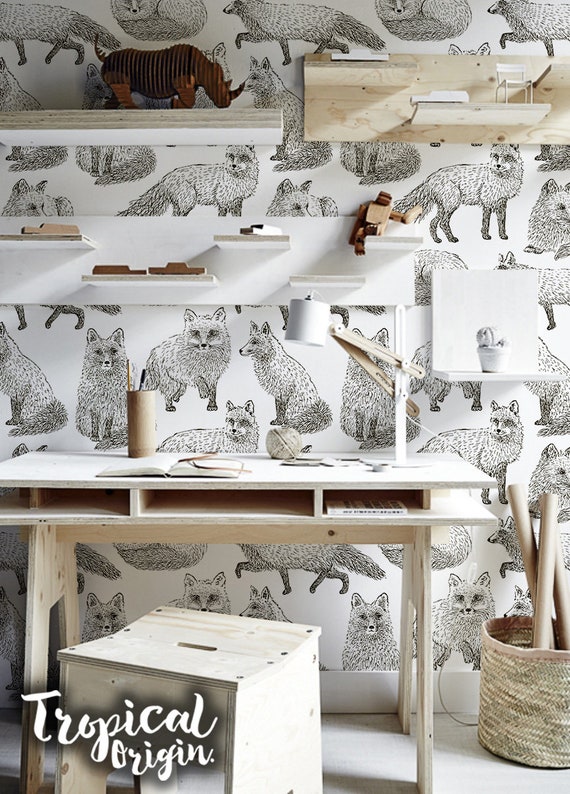 Animals Forest Removable Wallpaper Sketch Fox Pattern Hand Etsy