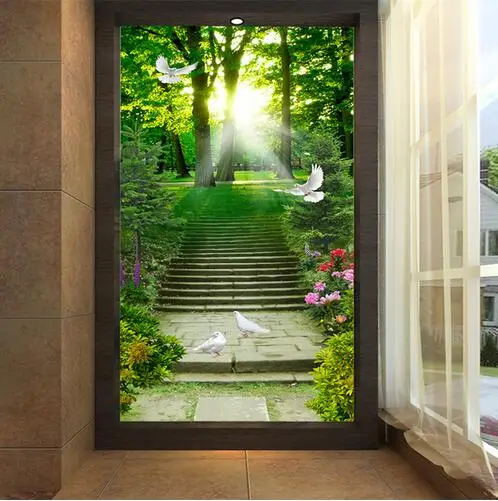 Shinehome Modern Interior Stairs Green Forest Wallpaper 3d For