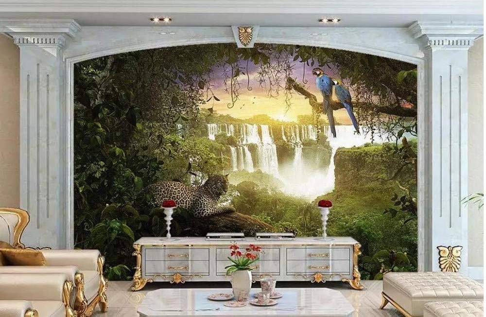 Wall Mural 3d Hand Painted Big Waterfall Parrot Forest Wallpaper