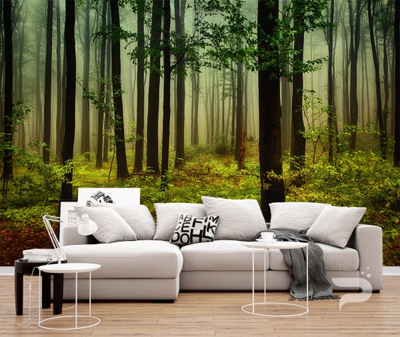 Forest Mist Wall Mural Green Forest Wallpaper Large Wall Etsy