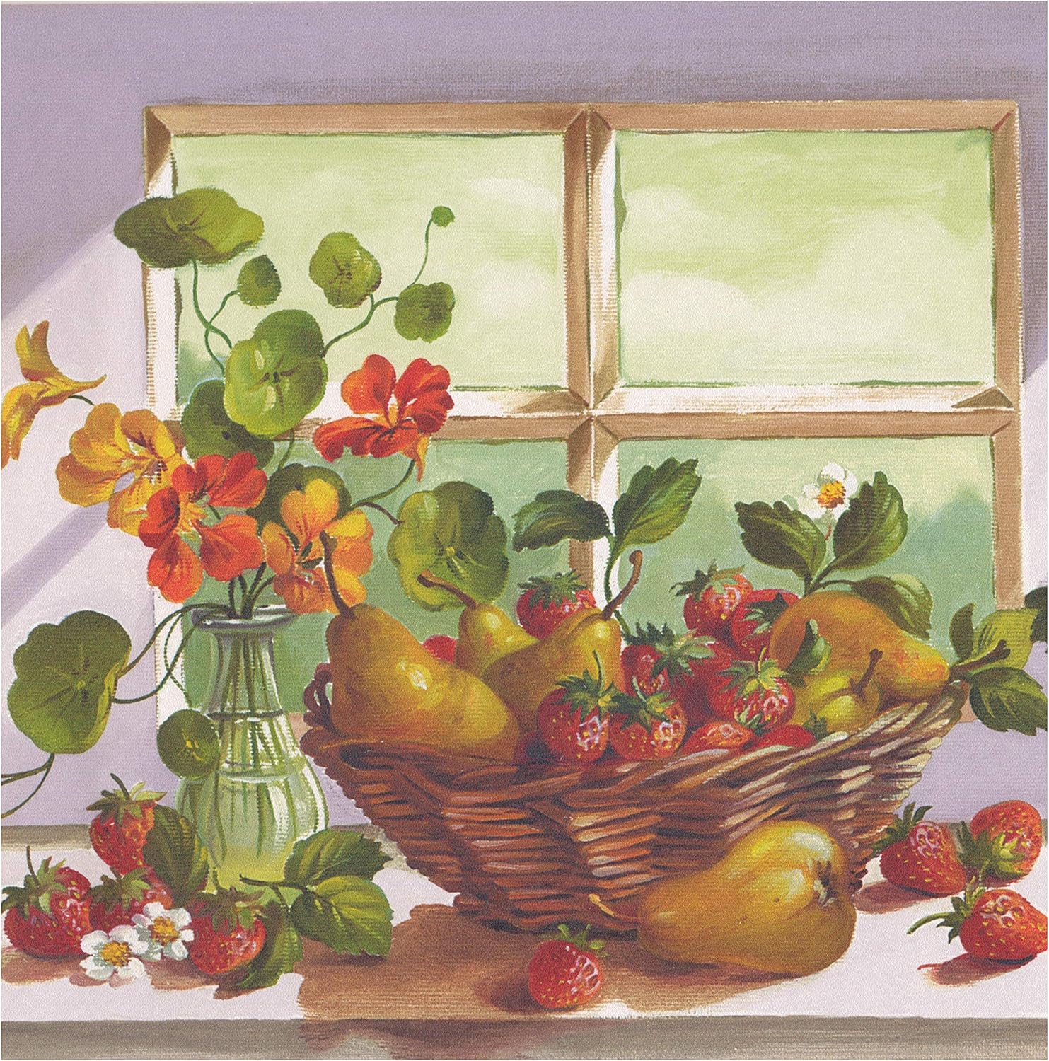 Fruit Baskets Wallpaper Border Flowers Kitchen Fk71410 Free Ship