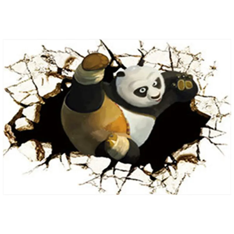 Kids Best Loved Cartoon Panda 3d Broken Wall Vinyl Stickers Kids