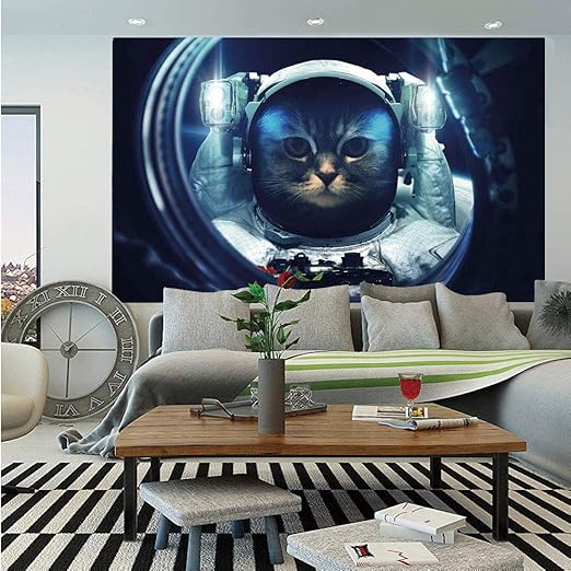 Amazon Com Space Cat Wall Mural Kitty In Space Suit Loking From
