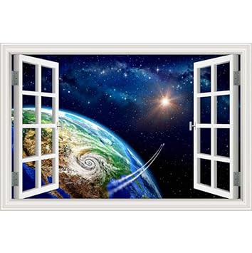 Amazon Com Wangjru 3d Window View Planet Galaxy Wallpaper Outer