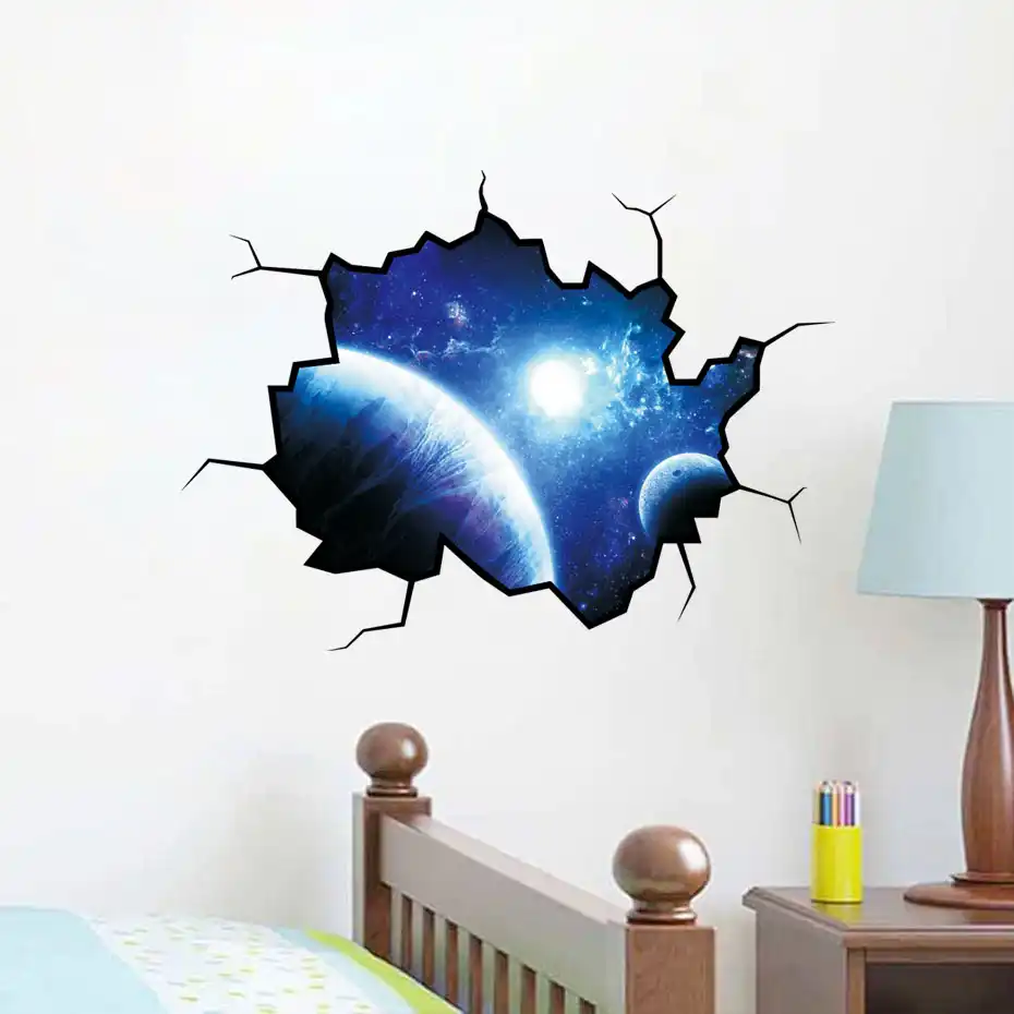 Crack Space Planet Wall Sticker For Kid Room Galaxy Stars Planets Universe 3d Moon Sticker Wall Mural Photo Wallpaper Wall Decors Wall Design Stickers From Cansou 13 62 Dhgate Com
