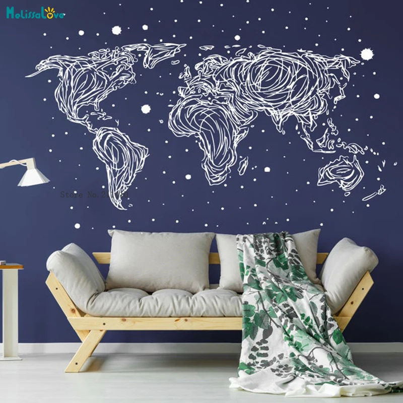 World Map Galaxy Wall Sticker New Design Art Decor Bright Stars Constellation Vinyl Decals Self Adhesive Poster Yt3669 Wall Stickers Aliexpress