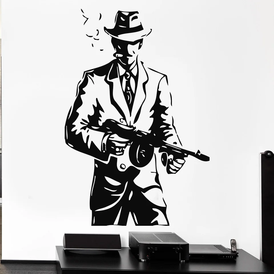 Free Shipping Diy Wallpaper Gangster Hat Gun Weapons Tommy Gun