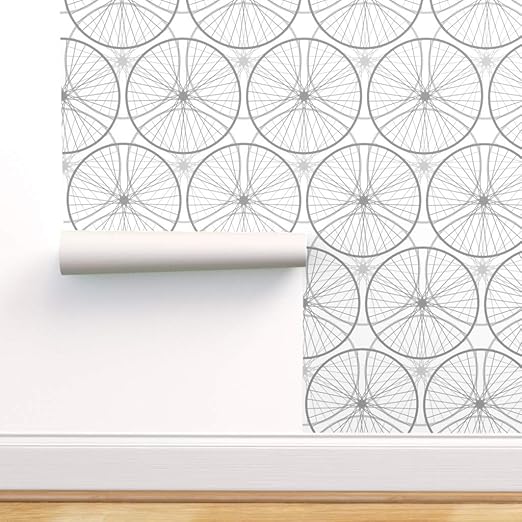 Peel And Stick Removable Wallpaper Bicycle Wheel Geometric Grey
