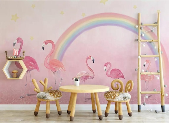 Pink Flamingo Wallpaper Nursery Decor Girls Bedroom Wallpaper Etsy