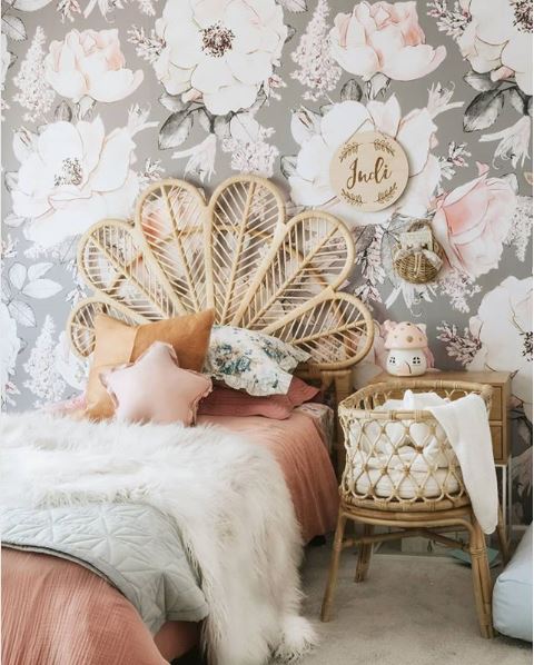 Boho Chic Girl S Bedroom Inspo Delicate Floral Wallpaper Livettes
