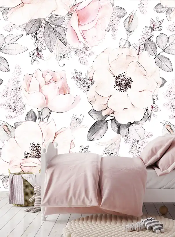 Flower Pattern Removable Repositionable Girls Wall Mural Wallpaper