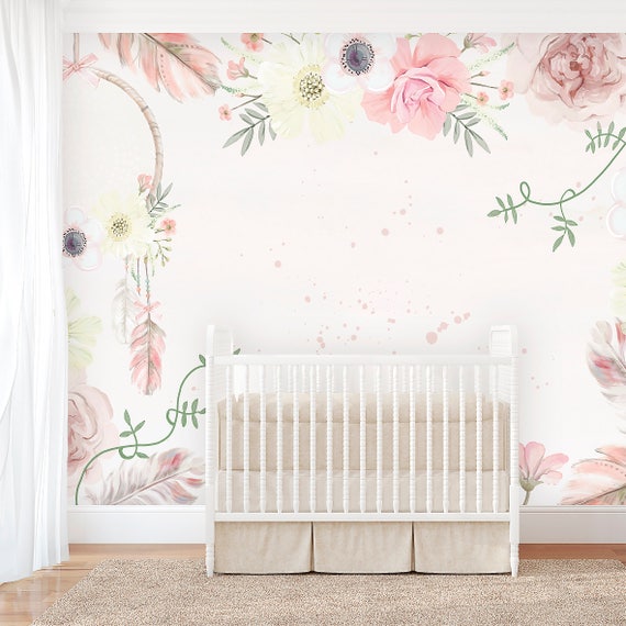 Removable Wallpaper Floral Wallpaper Blush Pink Girl Etsy