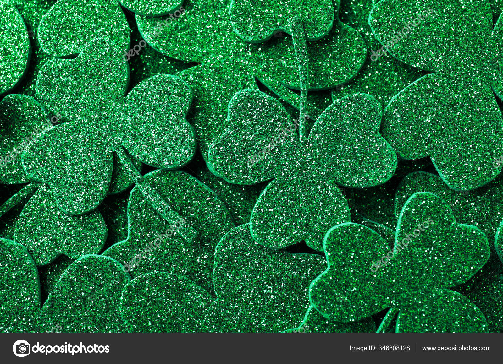 Glitter Green Clover Leaves Background Top View Patrick Day