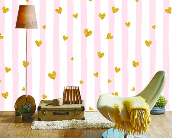 Golden Glitter Heart Wallpaper 3d Wall Sticker Wall Decor Peel Etsy