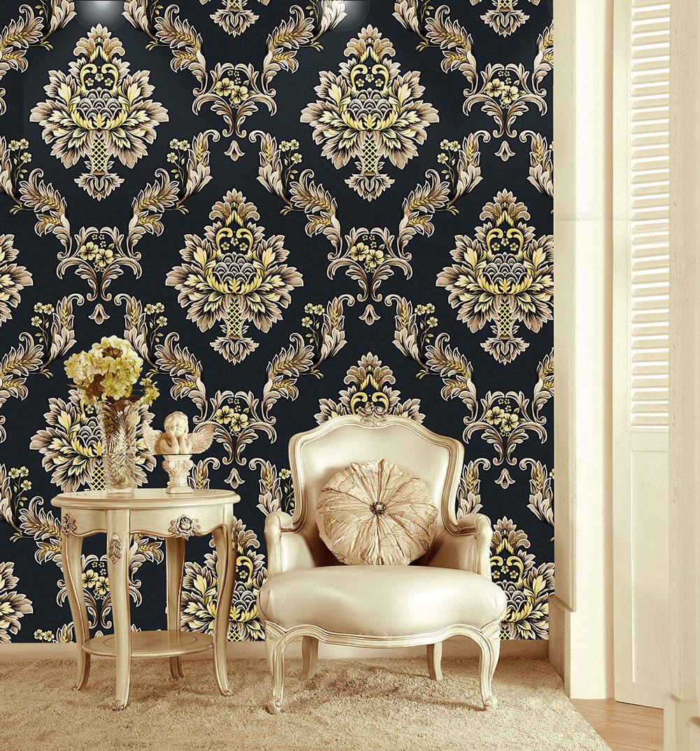 Haokhome 361101 Luxury Heavy Texture Damask Wallpaper Black Gold