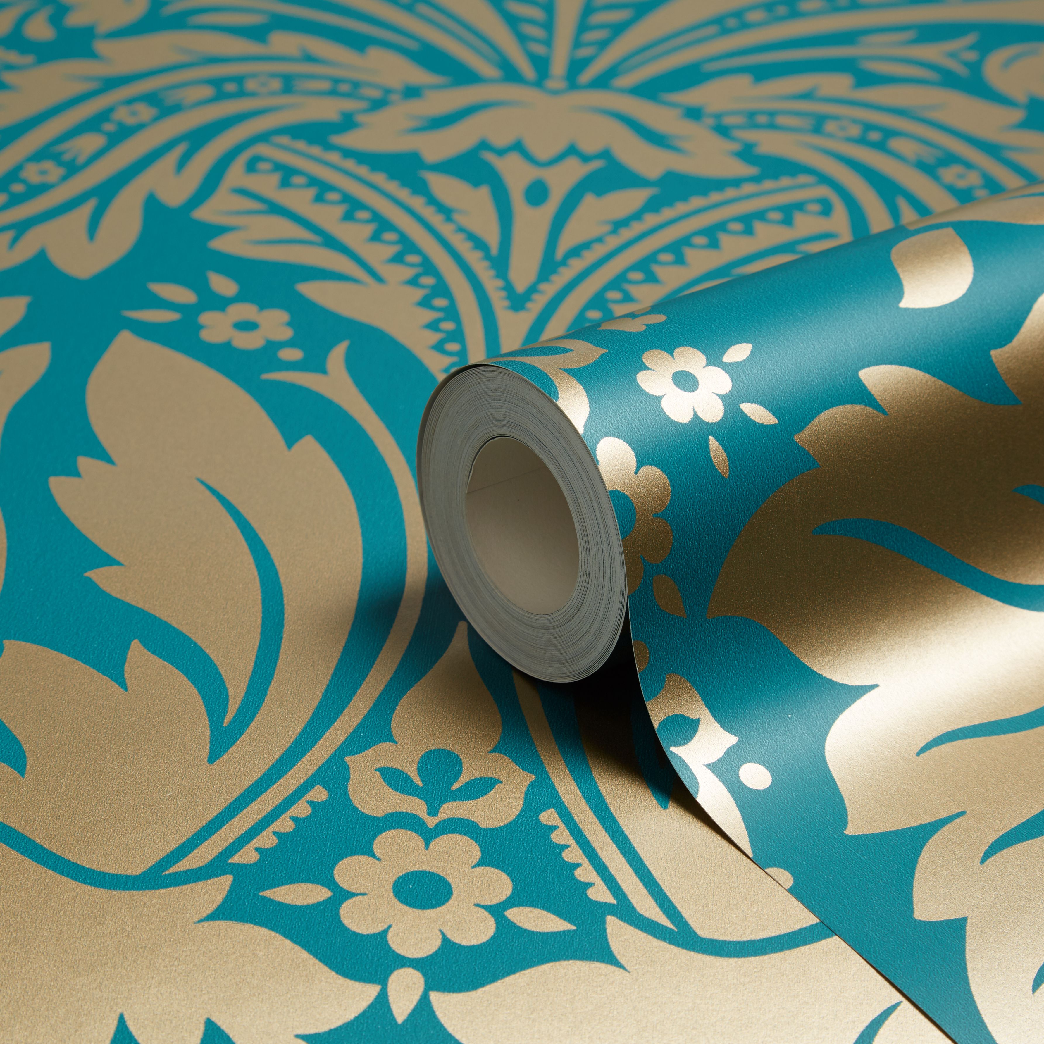 Desire Teal Gold Grand Damask Metallic Wallpaper Departments