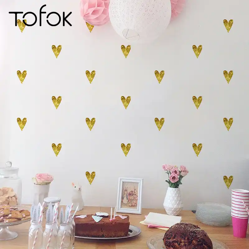 Tofok 54pcs Glitter Gold Heart Diy Wall Sticker Kids Room Baby