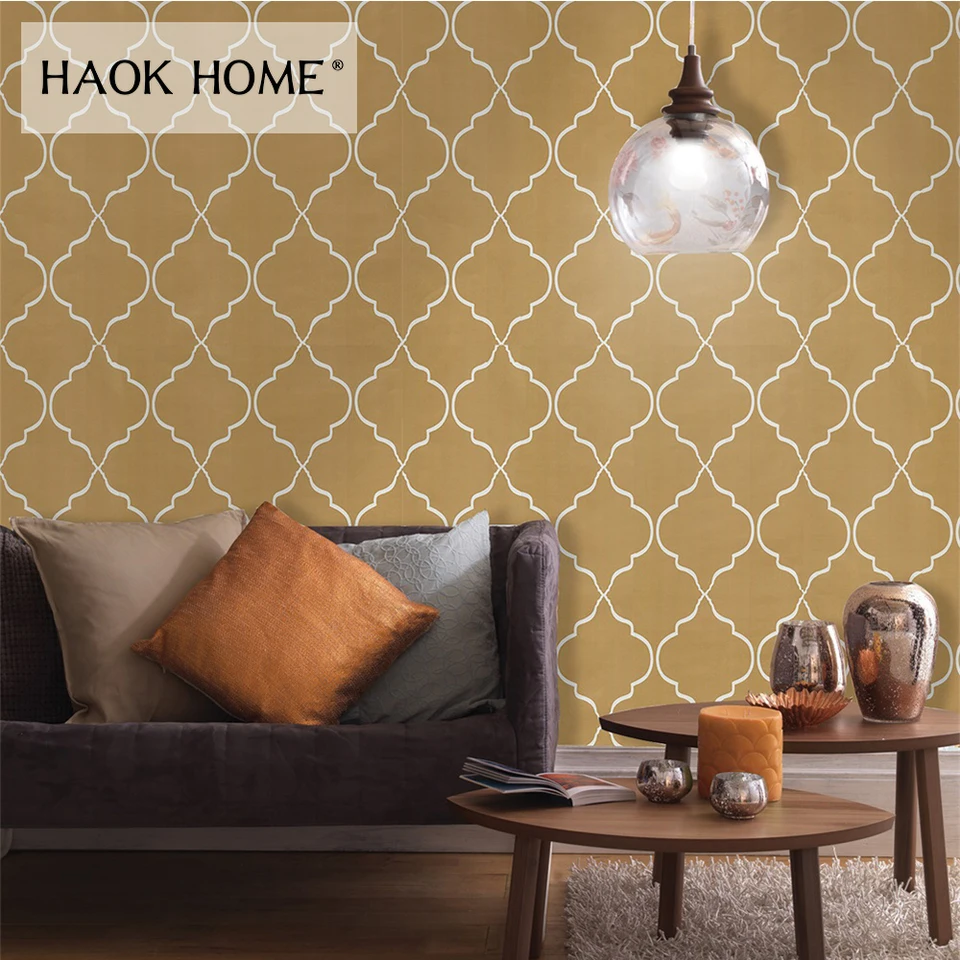 Haokhome Modern Geometric Wallpaper Peel And Stick Yellow Gold