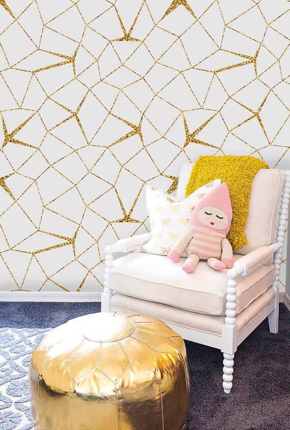 Gold Hexagon Removable Wallpaper G197 13 Etsy